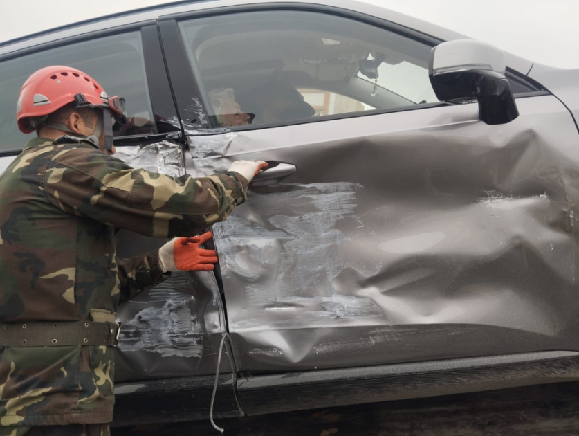 Avtomobildə sıxılı vəziyyətdə qalan sərnişin xilas edilib