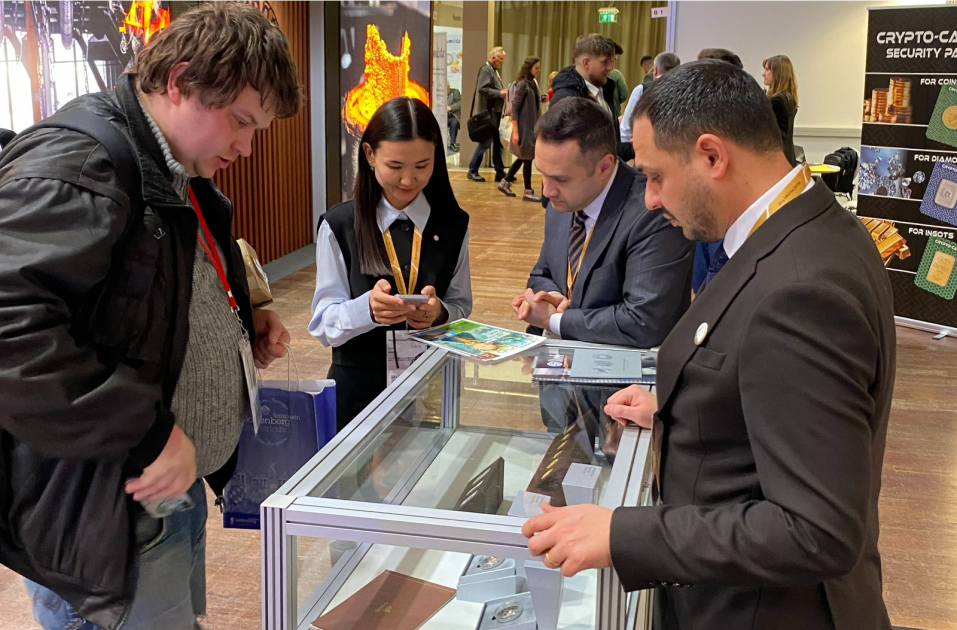 “AzerGold” QSC tərəfindən ölkəmizin pərakəndə satış bazarına təqdim edilən qızıl və gümüş sikkələr, eləcə də qızıl külçələr beynəlxalq sərginin iştirakçılarının böyük marağına səbəb olub. Ziyarətçilərə Ümummilli Lider Heydər Əliyevin anadan olmasının 100-cü ildönümü münasibətilə “Smartminting” texnologiyası əsasında 3D formatında istehsal edilmiş “100 il və onun fövqündə bir irs” unikal qızıl sikkəsi, “Uzun Həsən”, Qarabağ kolleksiyasına aid “Qarabağ inciləri”, “Qarabağ xalçası – Çələbi”, “Şuşa”, “Xurşidbanu Natəvan”, “Zəfər”, “İçərişəhər”, “Heydər Əliyev Fondu”, “Heydər Əliyev Mərkəzi”, “Naxçıvan”, “Qobustan” sikkələri daxil olmaqla, Azərbaycanın müasirliyini, tarix və incəsənətini, qədim ənənələrini təbliğ edən sikkələr barədə ətraflı məlumatlar verilib. Azərbaycanın füsunkar təbiətini, nadir növlərin qorunması ideyasını və innovativ istehsal texnologiyasını özündə birləşdirən numizmatika layihəsi çərçivəsində ərsəyə gətirilən yeni nəsil gümüş sikkə kolleksiyası da maraqla qarşılanıb. Bu kolleksiya Azərbaycanın nadir fauna növlərini əks etdirən “Ceyran”, “Bəbir” və “Bezoar keçisi” olmaqla üç unikal sikkədən ibarətdir.