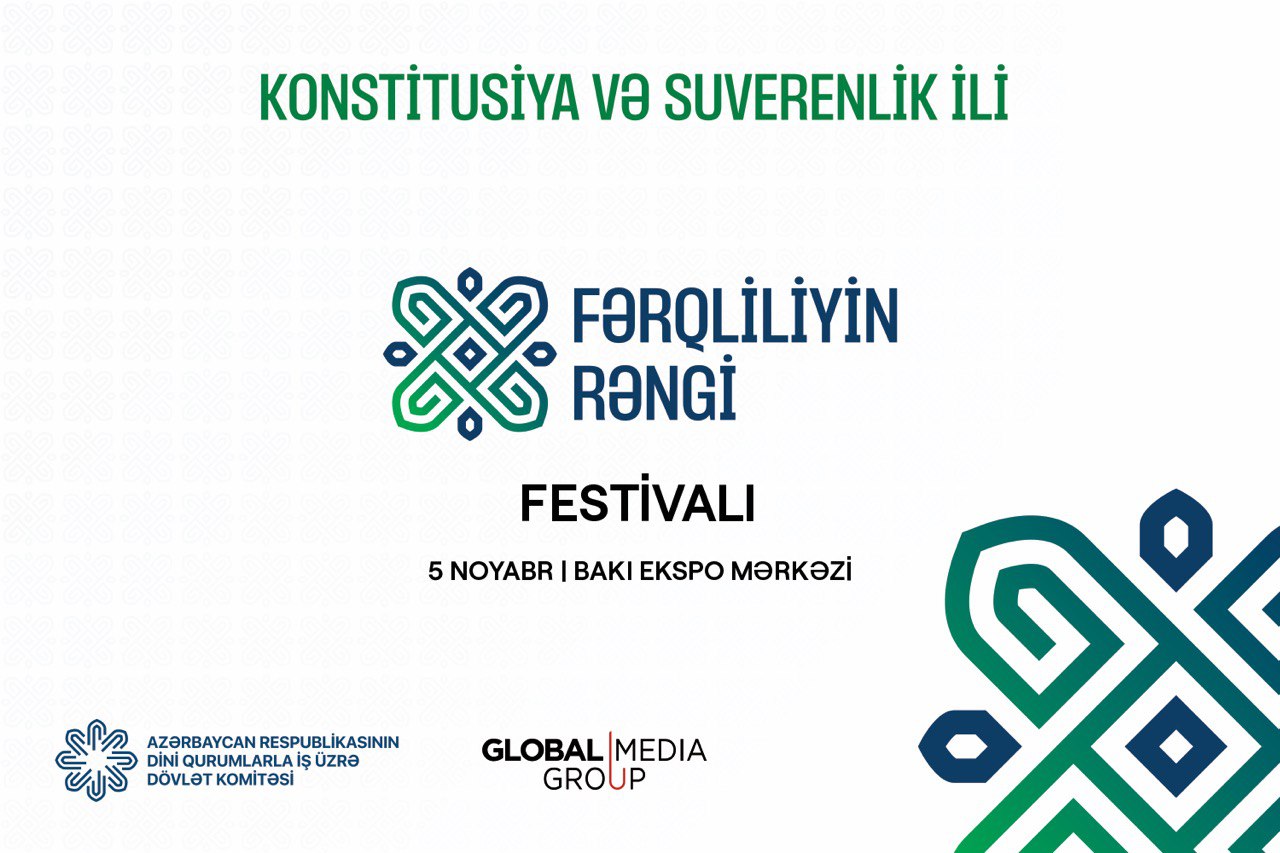 Noyabrın 5-də Bakıda Azərbaycan Respublikasının Dini Qurumlarla İş üzrə Dövlət Komitəsinin təşkilatçılığı ilə ölkəmizdə formalaşmış nümunəvi tolerantlıq və multikulturalizm mühitini, dinlərarası harmoniyanı, həmrəyliyi, mədəni müxtəlifliyi, birgəyaşayış dəyərlərini təbliğ və təşviq etmək məqsədilə “Konstitusiya və Suverenlik İli” çərçivəsində “Fərqliliyin rəngi” festivalı keçiriləcək.