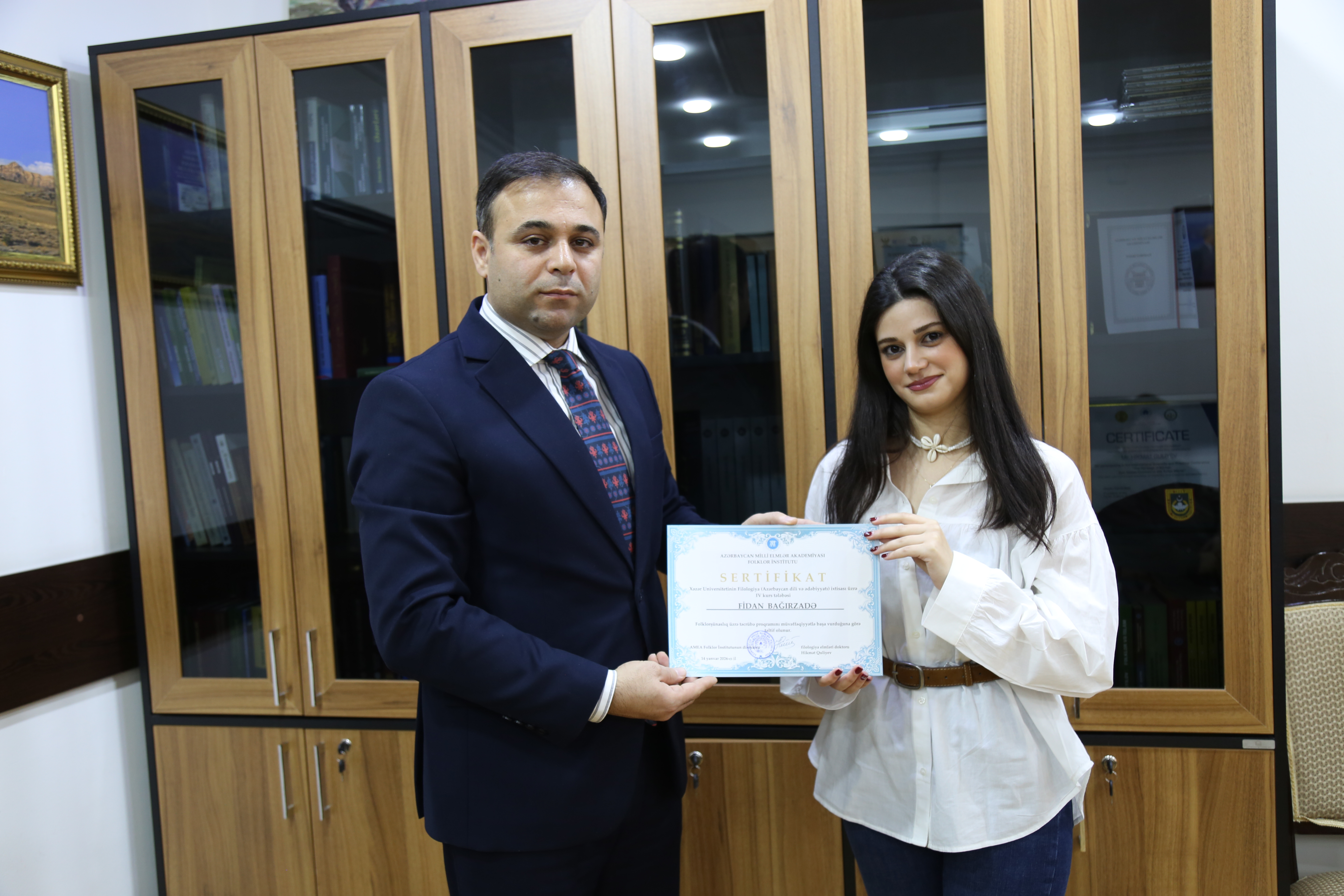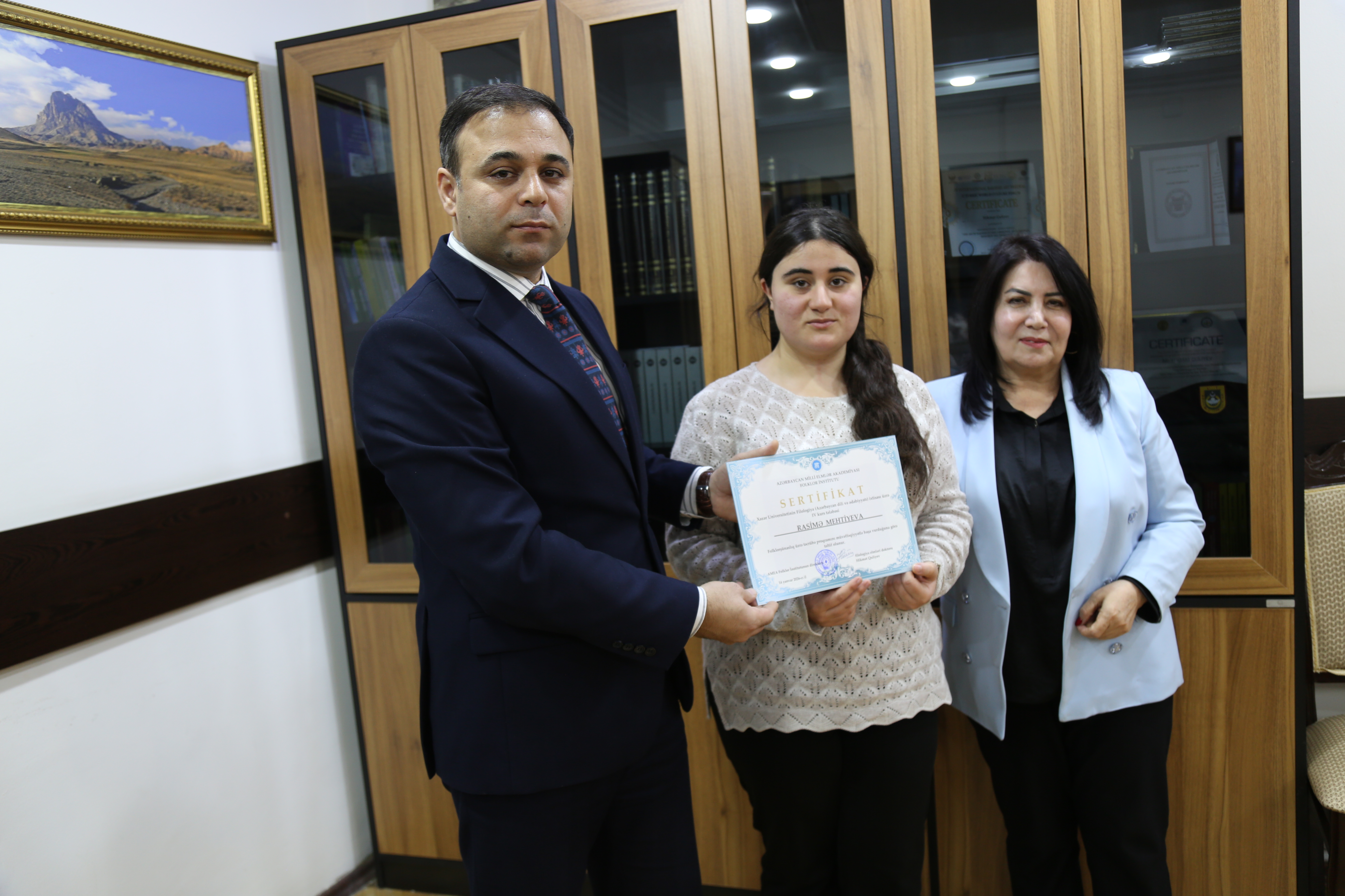 Tədbirin sonunda AMEA Folklor İnstitutunun direktoru, filologiya elmləri doktoru Hikmət Quliyev tələbələrə sertifikatları təqdim edib.