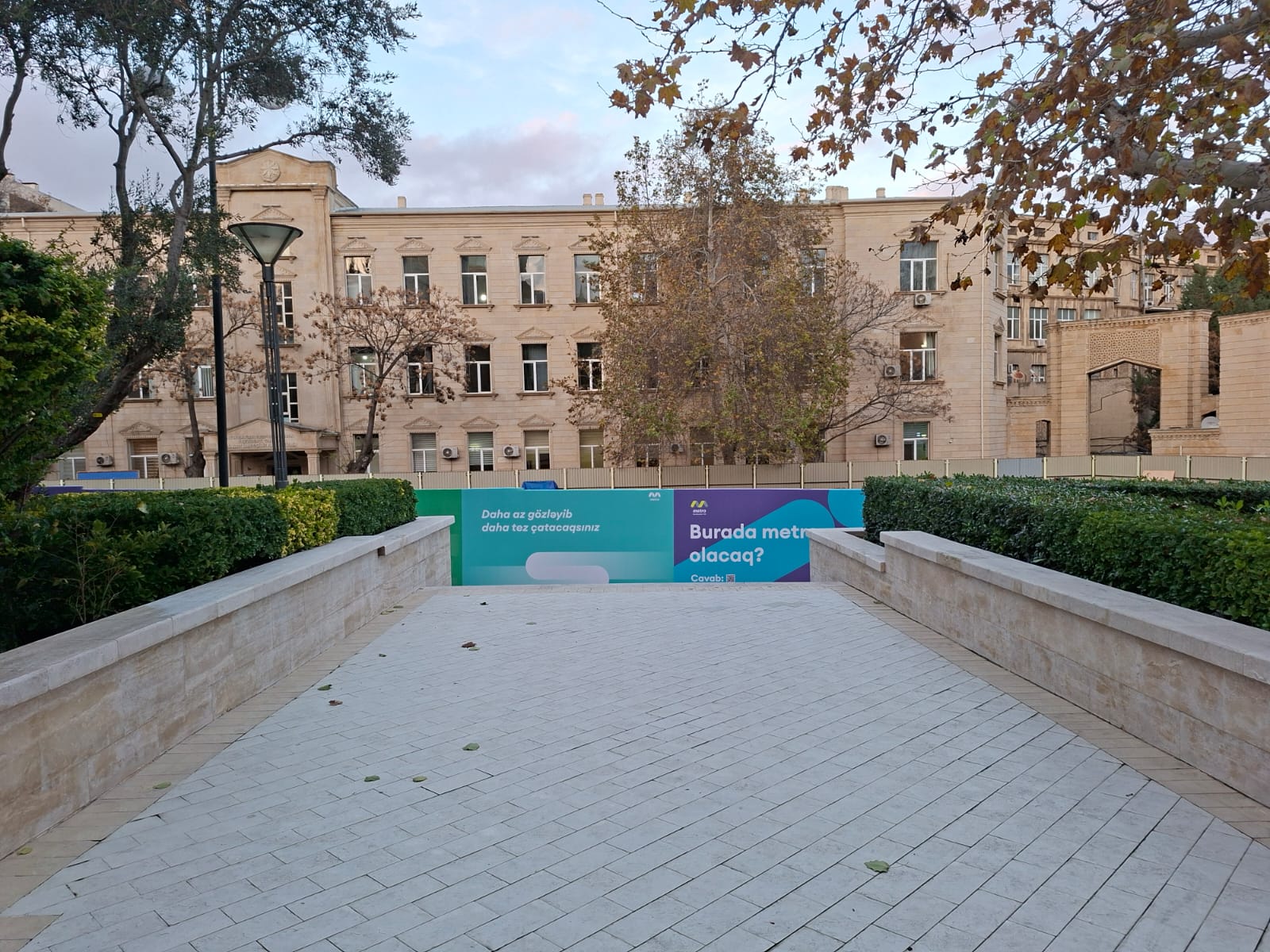 Əlavə edilib ki, inşaat sahəsi stansiyanın qala istiqamətində deyil, əks tərəfdə yerləşəcək: “Həmin ərazidə aparılacaq işlər qala tərəfinə gediş-gəlişə, sərnişin axınına heç bir təsir etməyəcək. Stansiyanın yaxınlığında insanların hərəkətinə mane olacaq heç bir məhdudiyyət planlaşdırılmır. Növbəti ildən inşaat işlərinin intensiv şəkildə aparılması gözlənilir”.
