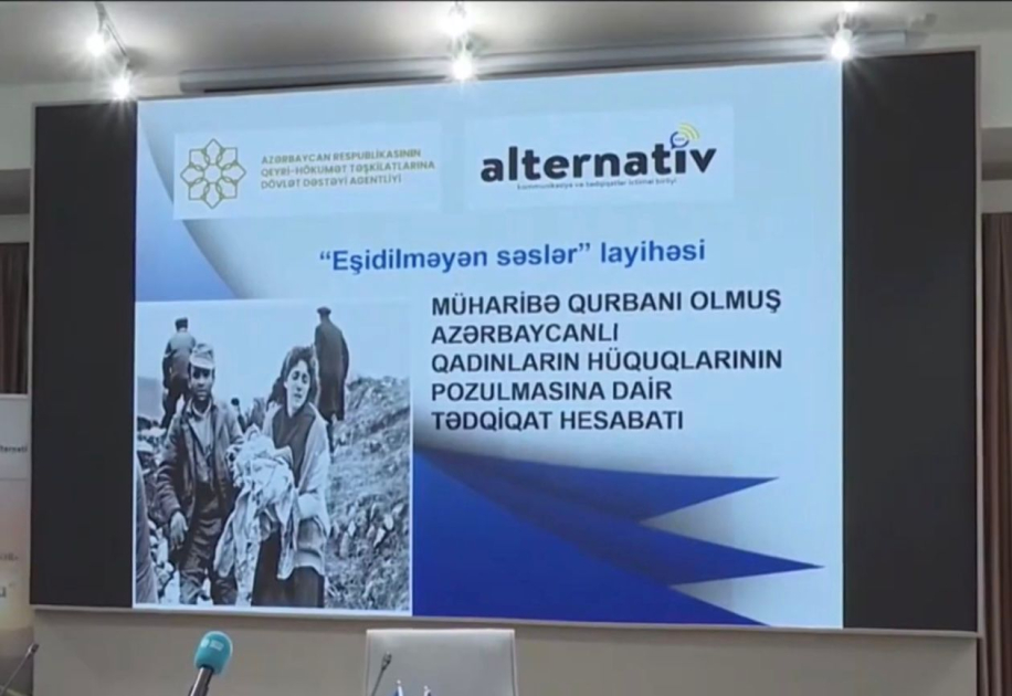 Daha sonra “Alternativ” Kommunikasiya Tədqiqatlar İctimai Birliyinin sədr müavini Jalə Quliyeva Ermənistan işğalının qurbanı olmuş azərbaycanlı qadınların hüquqlarının pozulması, üzləşdiyi zorakılıq, məhrumiyyət və iztirabların onların sağlamlığı və sosial statusu üçün uzunmüddətli nəticələrini təhlil edən Tədqiqat Hesabatını təqdim edib. O, müharibə qurbanı olmuş 50 qadın arasında sorğu keçirildiyini bildirib. Vurğulanıb ki, respondentlər arasında girov götürülərək fiziki, psixoloji və cinsi zorakılığa, müxtəlif ağır işgəncələrə məruz qalan qadınlar olub. Qadınlar məcburi köçkünlük, ailə üzvlərinin itirilməsi, əmlaklarının talan olunması və digər insanlıq əleyhinə əməllərlə üzləşiblər.