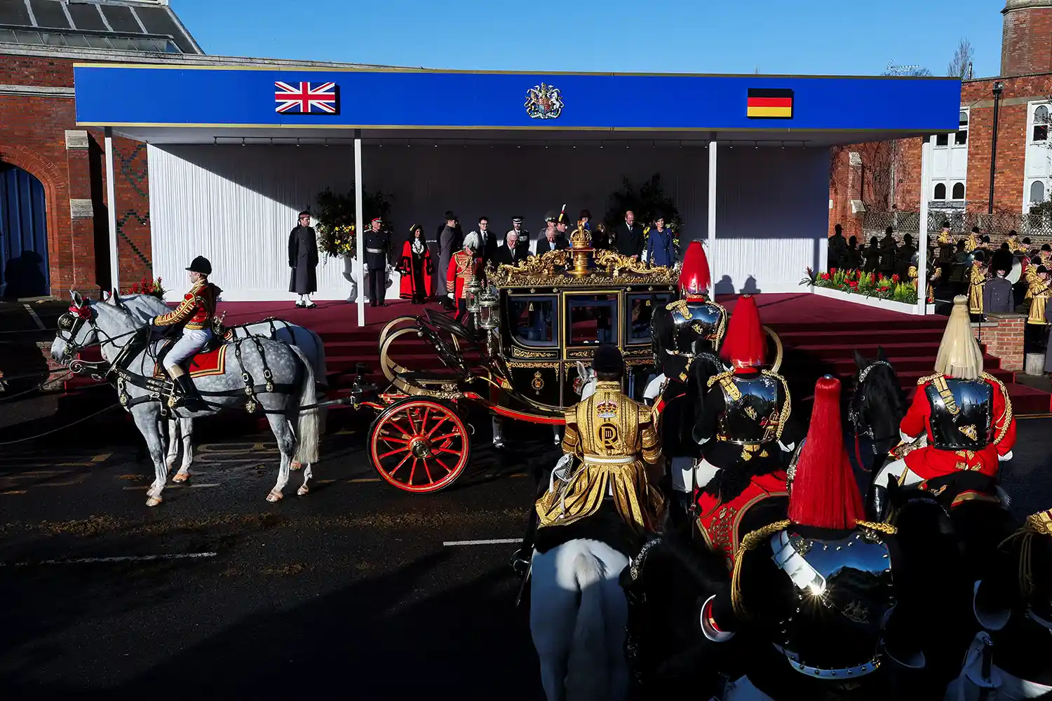 Böyük Britaniya Kralı III Çarlz, Kraliça Kamilla, eləcə də Uels Şahzadəsi Uilyam Almaniya Prezidenti Frank-Valter Ştaynmayeri və xanımı Elke Budenbenderi Birləşmiş Krallıqda rəsmi dövlət səfəri çərçivəsində qarşılayıblar.