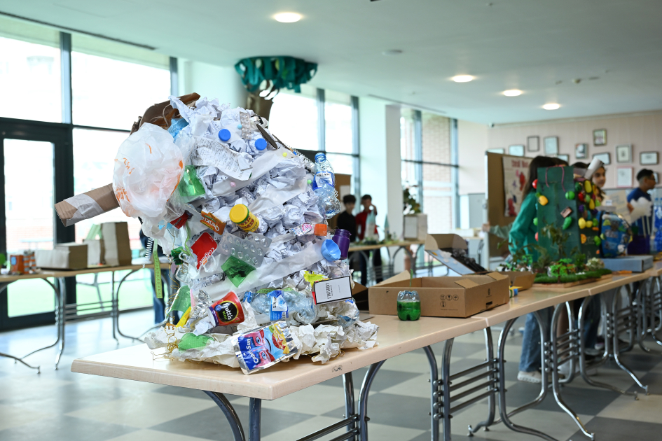 Əvvəlcə Leyla Əliyeva məktəblilərin ətraf mühit problemlərinə, onun həlli yollarına, təbiətin qorunmasına dair ideyalarını əks etdirən əl işlərindən ibarət sərgiyə baxış keçirib.