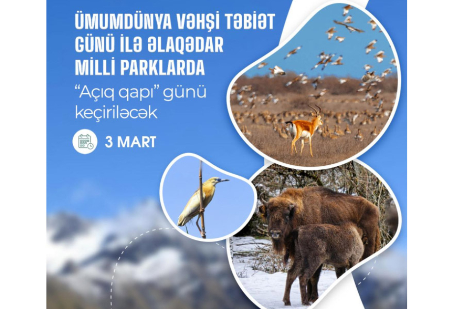 3 Mart – Ümumdünya Vəhşi Təbiət Günü ilə əlaqədar Azərbaycanın milli parklarında “Açıq qapı” günü keçiriləcək.