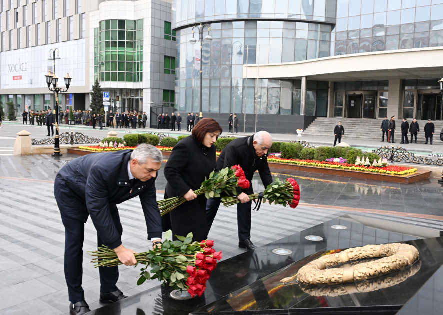 Rəsmilər Xocalı soyqırımı abidəsini ziyarət ediblər