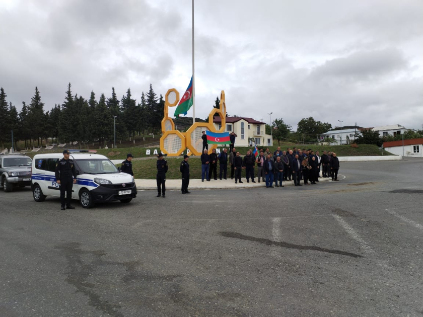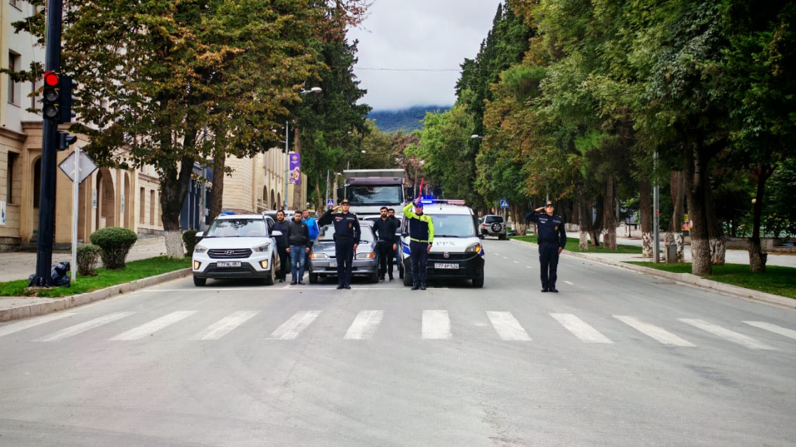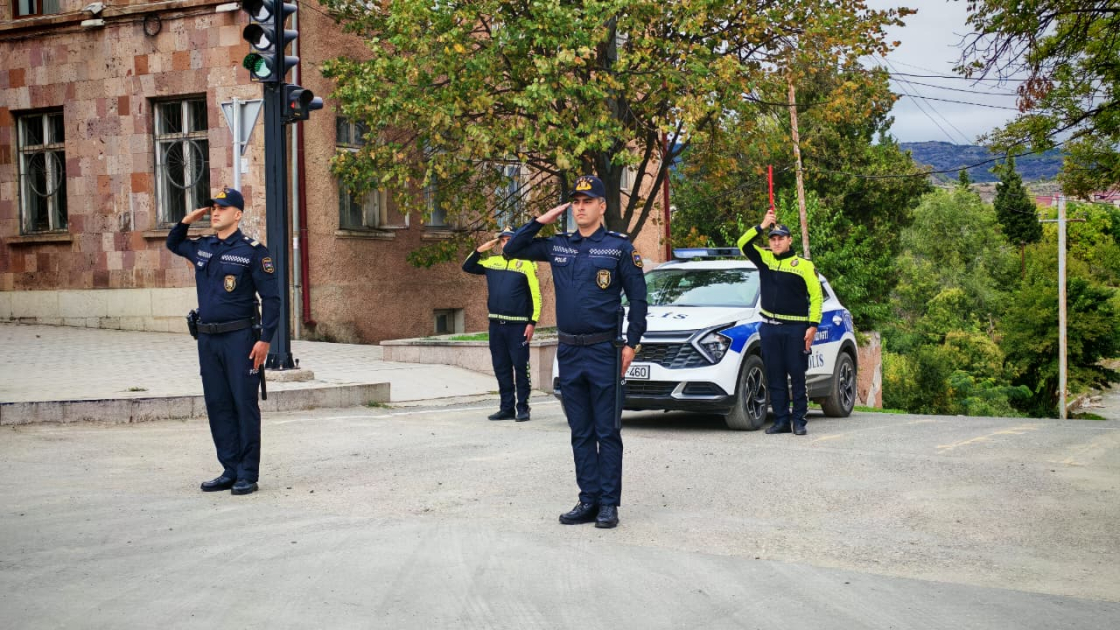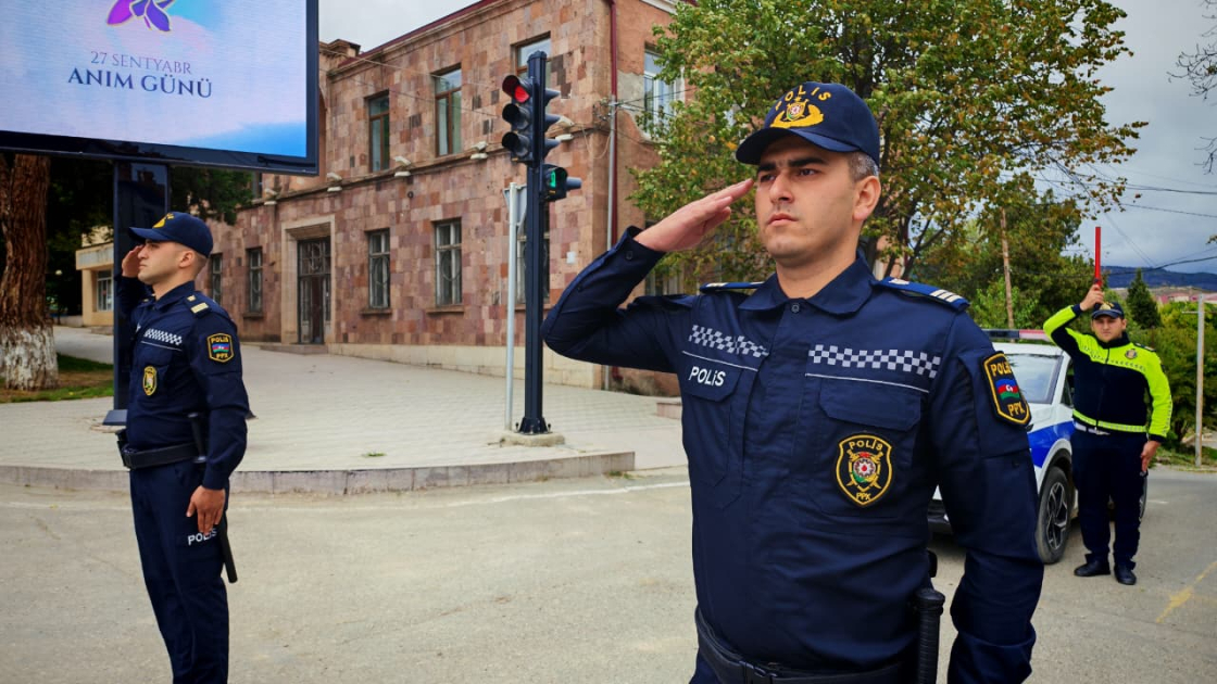 ERAmedia xəbər verir ki, saat 12:00-da nəqliyyatın hərəkəti dayanıb, avtomobillərdən siqnallar verilib, polis əməkdaşları hərbi salamla şəhidlərimizin xatirəsini anıblar.