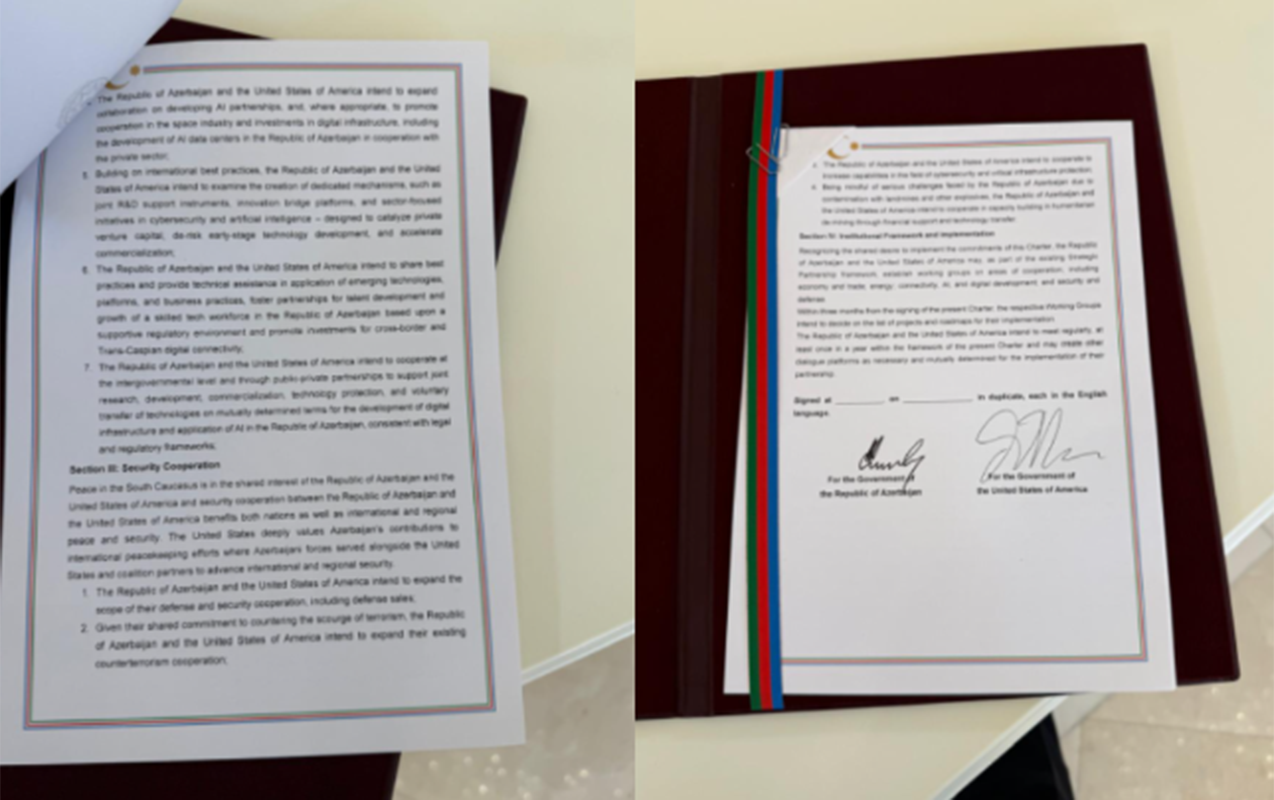 ERAmedia-nın məlumatına görə, bu barədə bu gün Azərbaycan Prezidenti İlham Əliyev və ABŞ-nin vitse-prezidenti Cey Di Vens tərəfindən imzalanmış Xartiyanın mətnində deyilir.