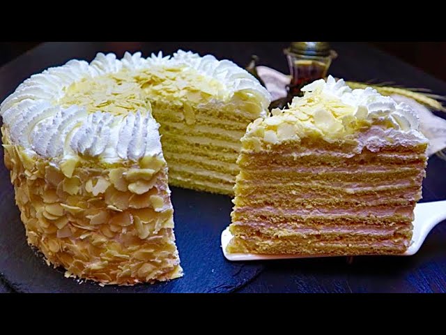 6. Tortu yığın. Tortun üzərinə qaymaq qoyun, sonra içliyi yayın və qaymaq bitənə qədər bu prosesi təkrarlayın.