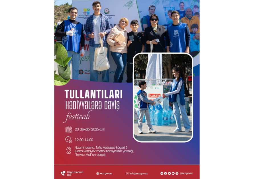 Qeyd edək ki, maraqlı interaktiv tədbirlərin də yer alacağı festivalda vətəndaşlar tullantıları gətirərək həm təbiətə töhfə verə, həm də hədiyyələr qazana bilərlər.