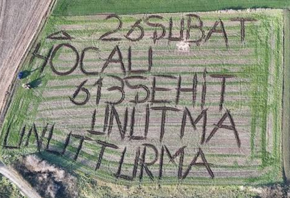 Türkiyənin Kırklareli vilayətində bir fermer irimiqyaslı hərflərlə tarlasında torpağa iz salaraq “26 Fevral Xocalı 613 Şəhid – Unutma, Unutdurma” yazıb.