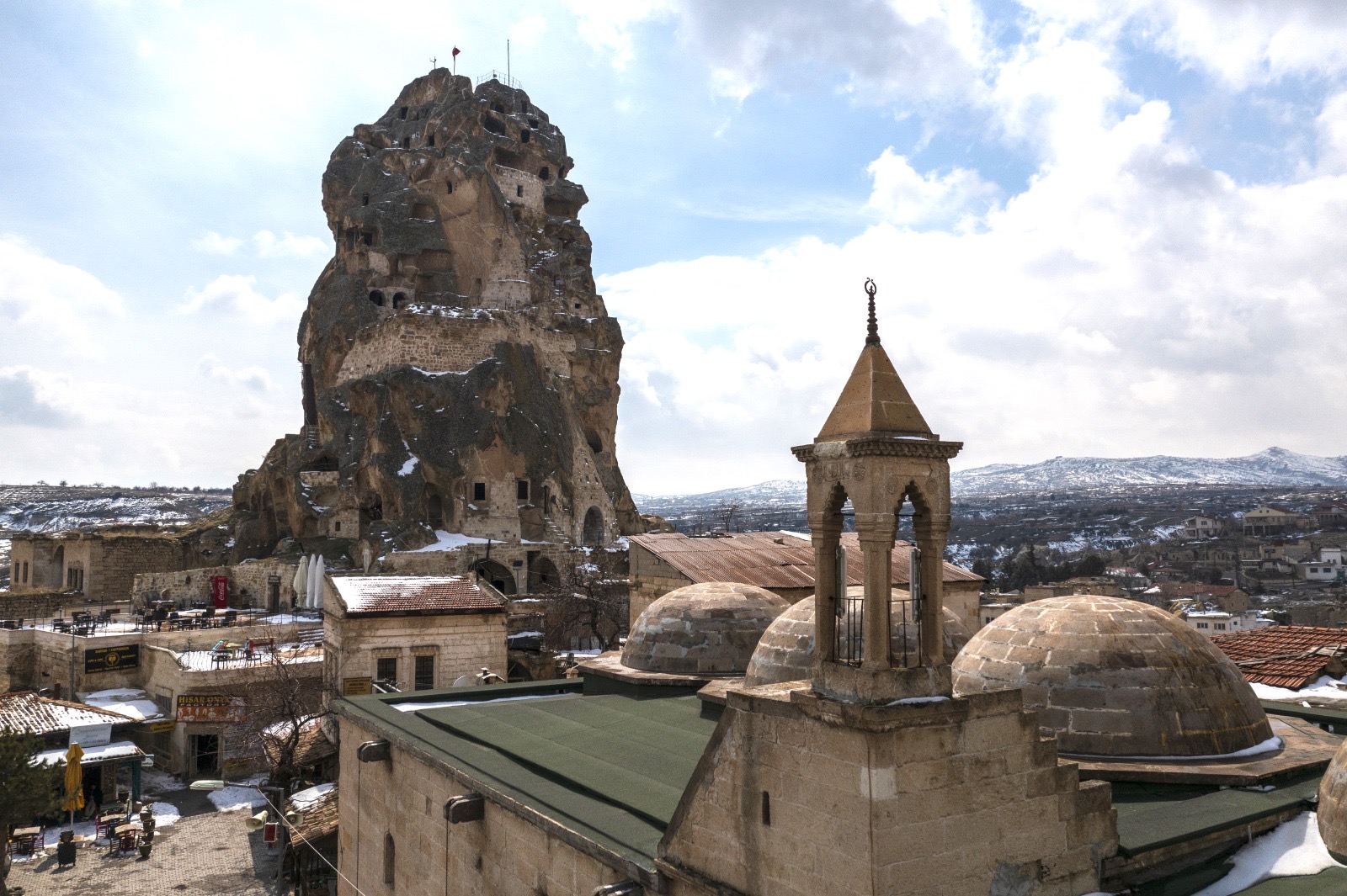 Qalanın ətrafında Kapadokiyanın ənənəvi memarlıq üslubunu əks etdirən təsirli tikililər sıralanır. Daş döşənmiş dar küçələr, ərik piştaxtaları və qızılgül ətirli çay bağları qonaqları vaxtilə bölgənin kənd təsərrüfatında mühüm rol oynamış mənzərəli vadilərə aparır.